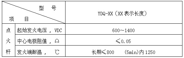 【高能點火槍/點火電極/點火桿主要技術(shù)參數(shù)】